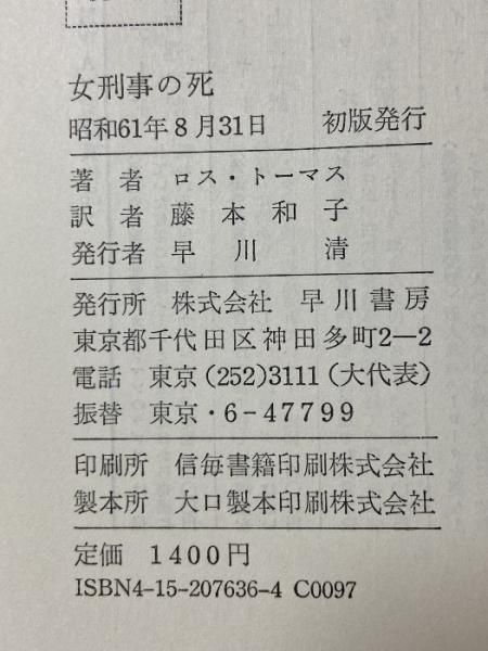 女刑事の死 早川書房 ロス トーマス