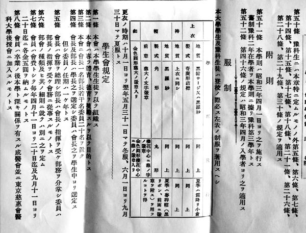 東京慈恵会医科大学学則 拡げたサイズ59×45㎝片面印刷 昭和3年