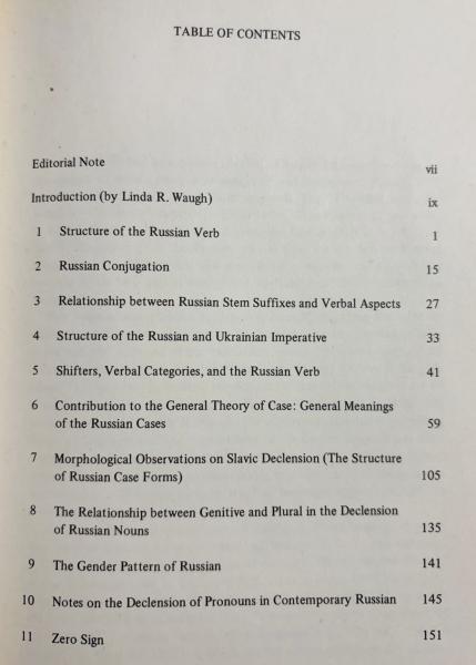 ロマーン・ヤーコブソンのロシア語・スラヴ語文法研究を集成した重要論文集。
