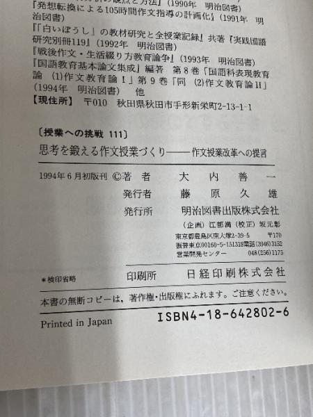 思考を鍛える作文授業づくり―作文授業改革への提言 (授業への挑戦 111) 明治図書出版 大内 善一