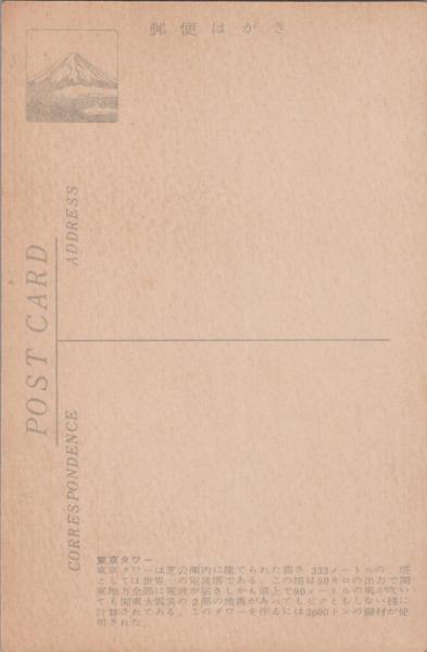 1001022■戦前 絵葉書■東京名所 東京タワー 写真版