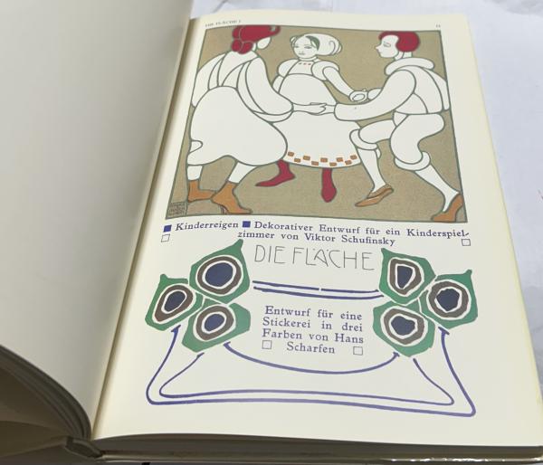 独文)デザイン誌「ディ・フレッフェ」第1巻 Die Fläche : Entwürfe für decorative Malerei, Placate, Buch und Druckausstattung, Vorsatzpapier, Umschläge, Menu- und Geschäftskarten, Illustrationen, Tapeten, Schwarz-Weisskunst, Textiles, Druck- und Weberei-Schablonen, Bleiverglasungen, Intarsia, Stickerei, Monogramme, Kleiderschmuck etc. Band 1.