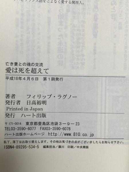 愛は死を超えて―亡き妻との魂の交流 ハート出版 フィリップ ラグノー