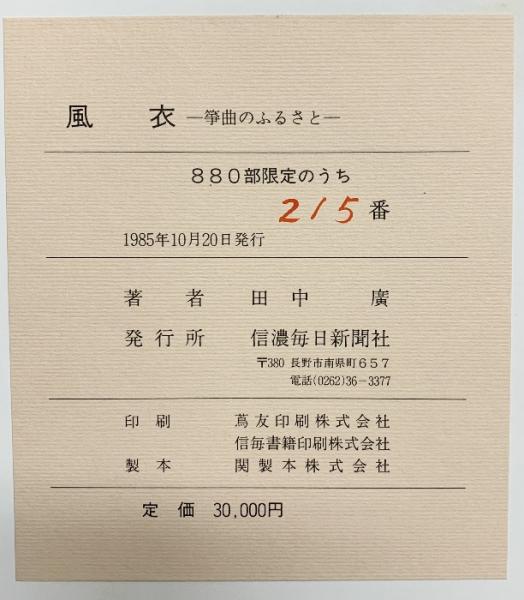 【図録】風衣-箏曲のふるさと-信濃毎日新聞 著:田中廣 【限定880部の内215番】