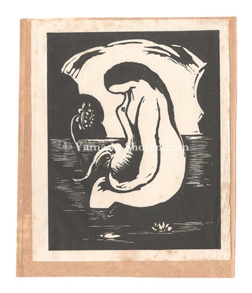 • 解説 木版 15x11.8cm(イメージサイズ)1枚シミ 少折レ 創作版画雑誌「版画」第1巻第3号所収 台紙貼付