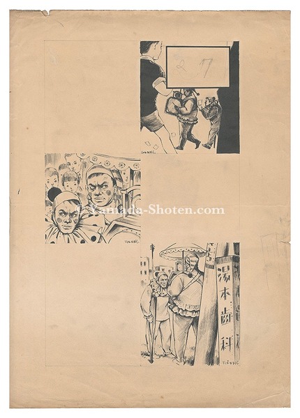 • 解説 ペン 墨彩 紙42.5x30.5cm(シートサイズ)1枚少シミ ヤケ 折レ 縁部切レ・シワ