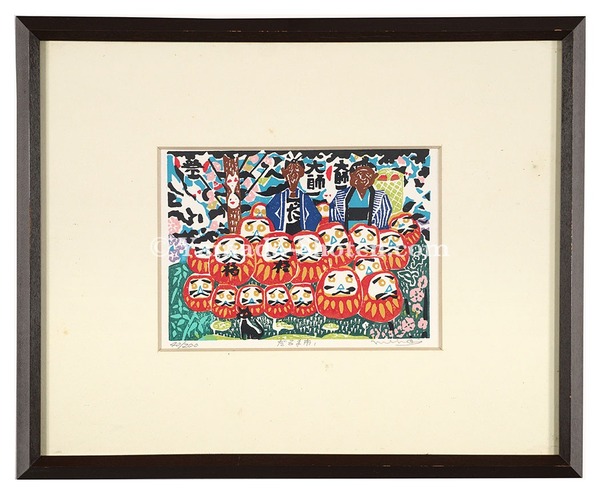 • 解説 木版 10.5x14.8cm(イメージサイズ) / 26.5x32.5cm(額サイズ)ed.200額装 1面Frame 薄いヤケ マージン少シミ