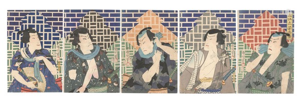 • 解説 Woodblock Print大判5枚続摺良 トリミング 少虫穴補修 少ヤケ 少汚レ 少傷ミ 一部薄ミ 河原崎権十郎 市村家橘 坂東彦三郎 沢村田之助 中村 芝翫