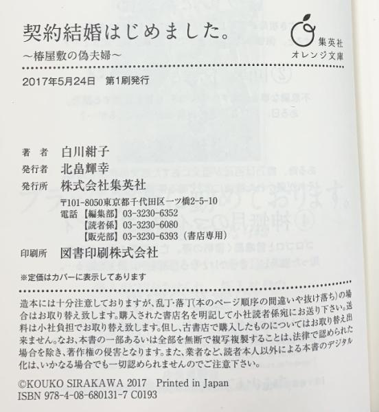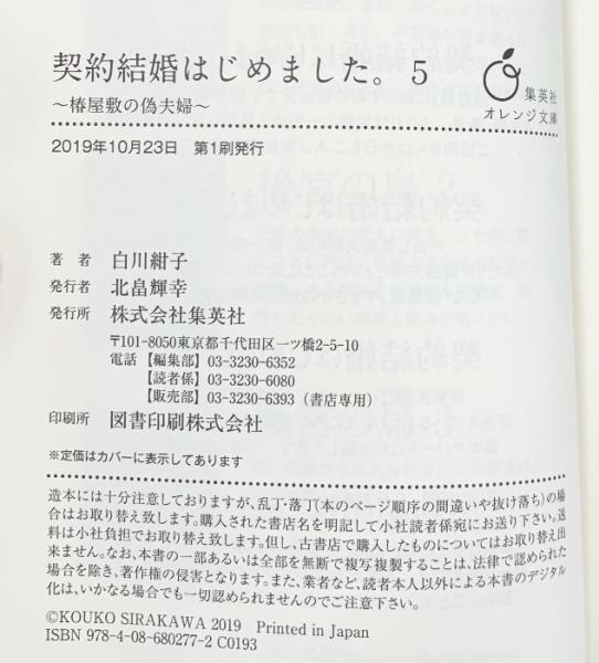 契約結婚はじめました(1~5/全5冊セット)集英社オレンジ文庫 白川紺子 2017年~2019年