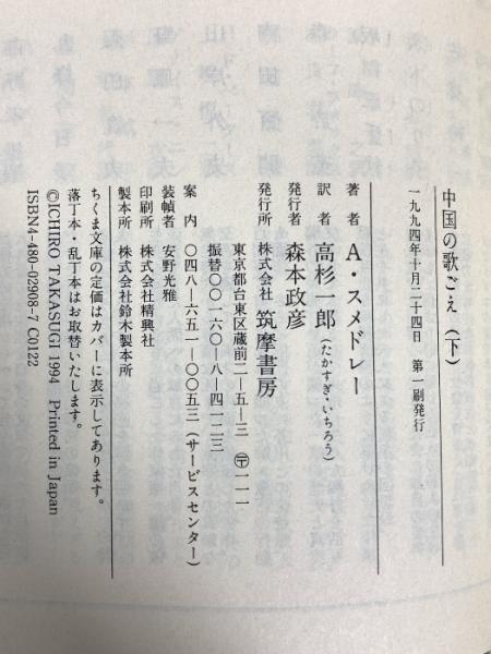 中国の歌ごえ 下 (ちくま文庫 す 9-2) 筑摩書房 アグネス スメドレー