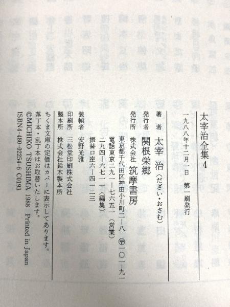 太宰治全集 (4) (ちくま文庫 た 12-4) 筑摩書房 太宰 治