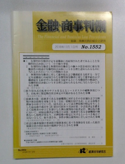 金融・商事判例 2018年11月1日号 No.1552