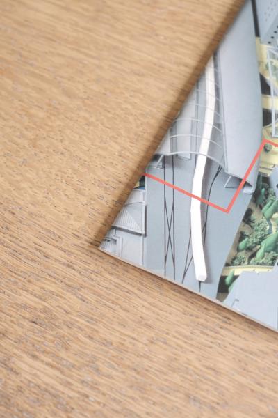 書籍を防水袋で密封し、緩衝材で四隅を保護してフラットに固定します。