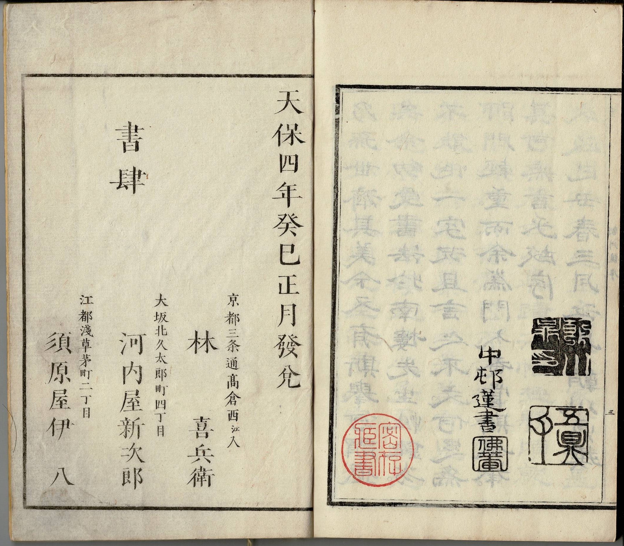 • 出版社 須原屋伊八 河内屋新次郎 林喜兵衞