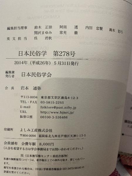 日本民俗学 278号 日本民俗学会 2014年