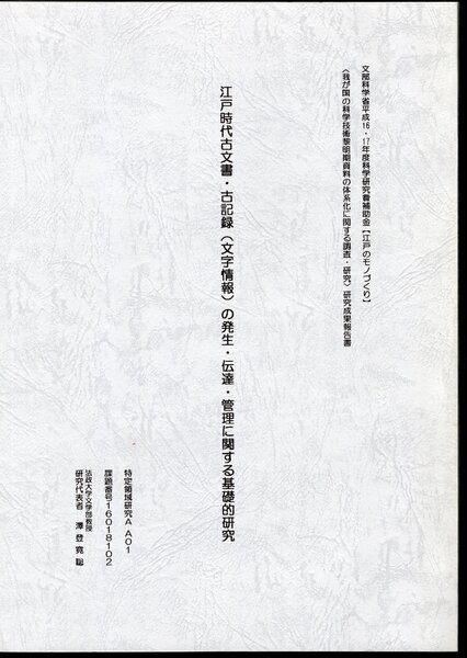 江戸時代古文書・古記録(文字情報)の発生・伝達・管理に関する基礎的研究