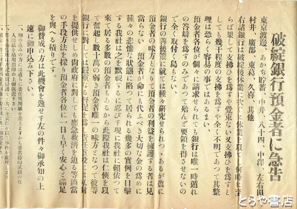 破綻銀行預金者に急告