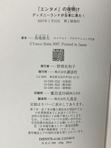 「エンタメ」の夜明け ディズニーランドが日本に来た! 講談社 馬場 康夫