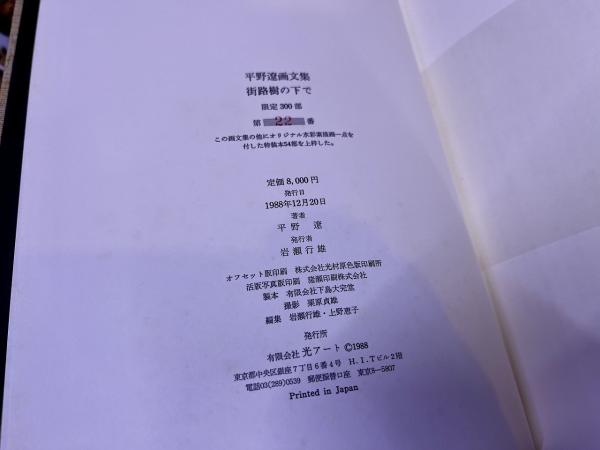 平野遼画文集 街路樹の下で 限定300部番号入 平野遼墨署名落款入