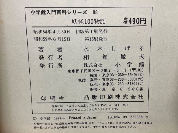 小学館入門百科シリーズ 88 妖怪100物語