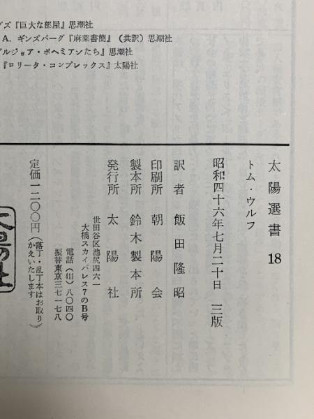 太陽選書18 クール・クールLSD交感テスト 太陽社 トム・ウルフ 昭和46年7月20日 三版
