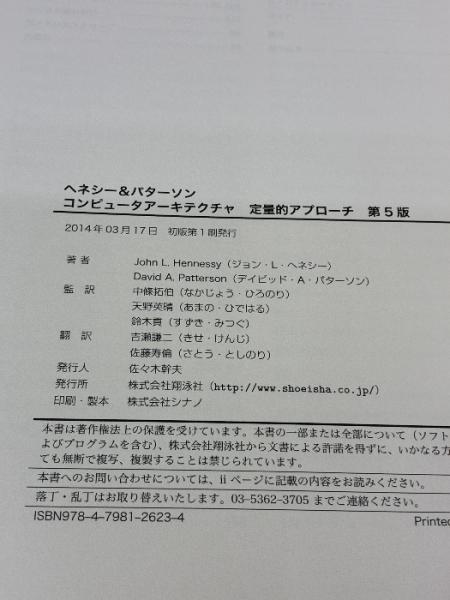 ヘネシー&パターソン コンピュータアーキテクチャ 定量的アプローチ第5版 翔泳社 ジョン・L・ヘネシー