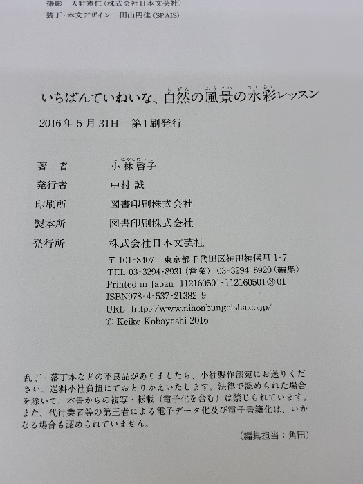 【※カバー無し】いちばんていねいな、自然の風景の水彩レッスン 日本文芸社 小林啓子