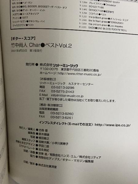 ギタースコア 竹中尚人Charベスト(2) リットーミュージック