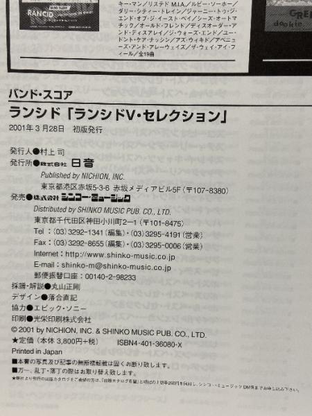 バンドスコア ランシド/ランシドVセレクション シンコーミュージック