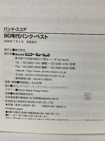 バンドスコア 90年代パンクベスト NOFX オフスプリング etc. シンコーミュージック