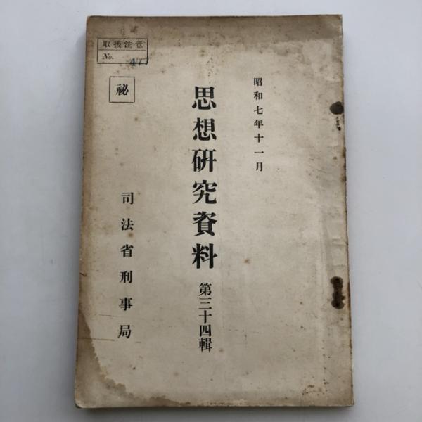 (秘・取扱注意)思想研究資料 第三十四輯(昭和7年11月・司法省刑事局)詳細は目次画像参照