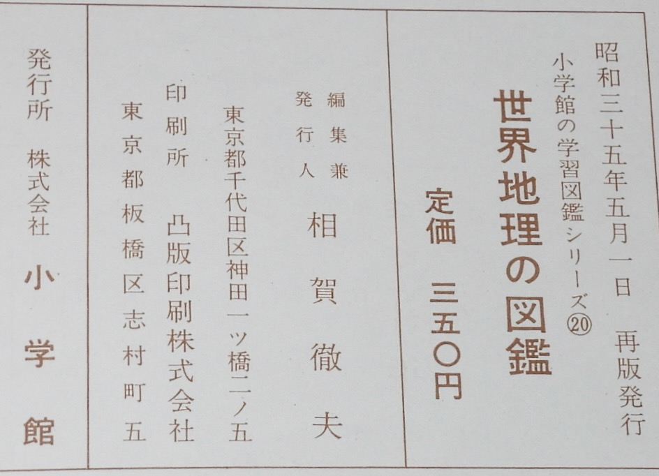 • 解説 小学館の学習図鑑シリーズ20 世界地理の図鑑 小学館 昭和35年5月再版 B5判ハードカバー箱入.
