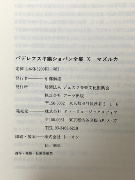 ショパン全集 X : マズルカ集/パデレフスキ編 ヤマハミュージックエンタテイメントホールディングス