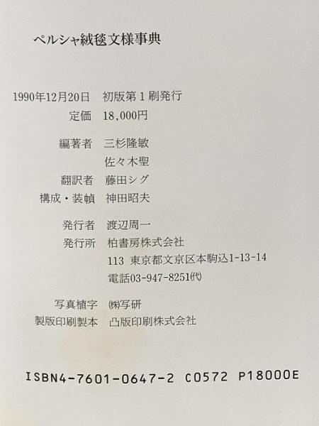 ペルシャ絨毯文様事典 1990年 柏書房株式会社 三杉隆敏 佐々木聖