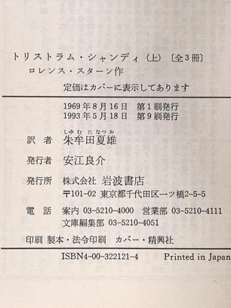 トリストラム・シャンディ (上) (岩波文庫 赤 212-1) 岩波書店 ロレンス スターン