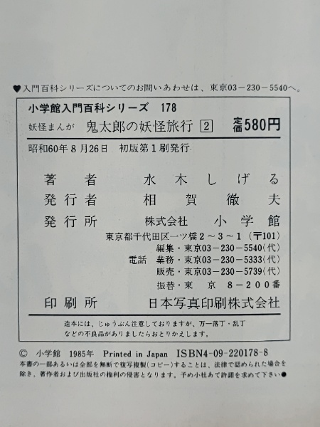妖怪まんが 鬼太郎の妖怪旅行 2 小学館入門百科シリーズ 178