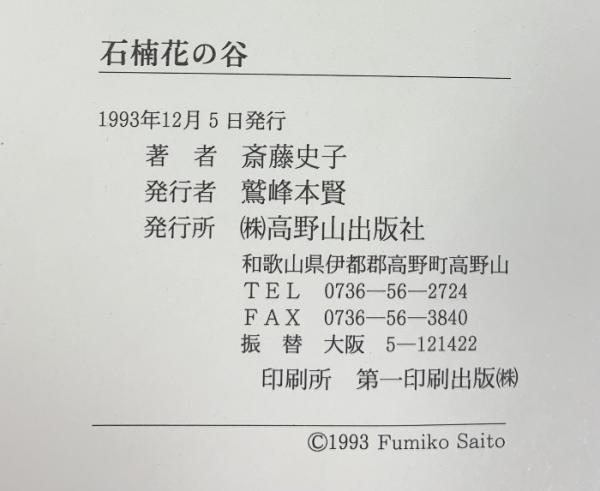 石楠花の谷 斎藤史子 高野山出版社 1993年
