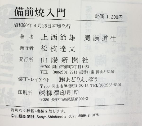 備前焼入門 上西節雄・周藤道生:著 山陽新聞社 昭和60年