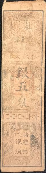 〈藩札〉伊予 大洲藩 銀五匁 慶応4年 修成館