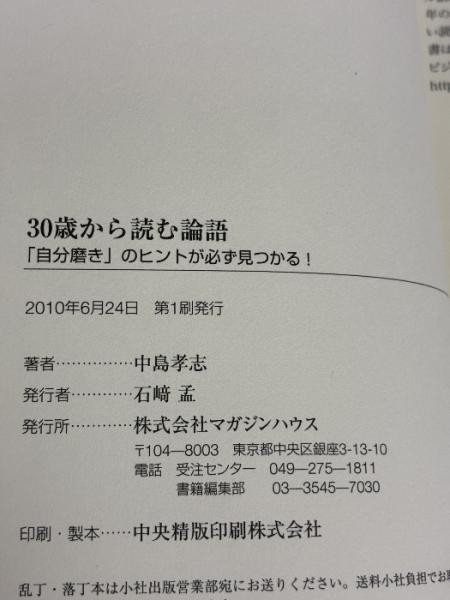 30歳から読む論語 「自分磨き」のヒントが必ず見つかる! マガジンハウス 中島 孝志