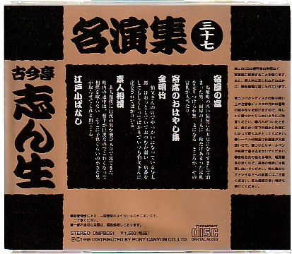 落語CD 古今亭志ん生名演集37 宿屋の富 寄席のおはやし集 金明竹 素人相撲 江戸小ばなし