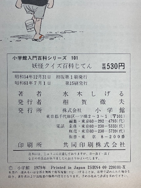 妖怪クイズ百科じてん 小学館入門百科シリーズ 101