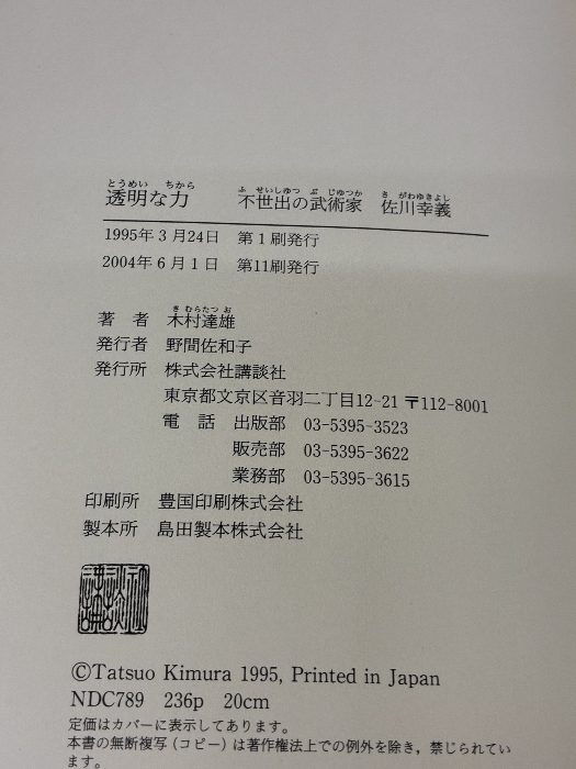 【※イタミ有り】透明な力 講談社 木村 達雄