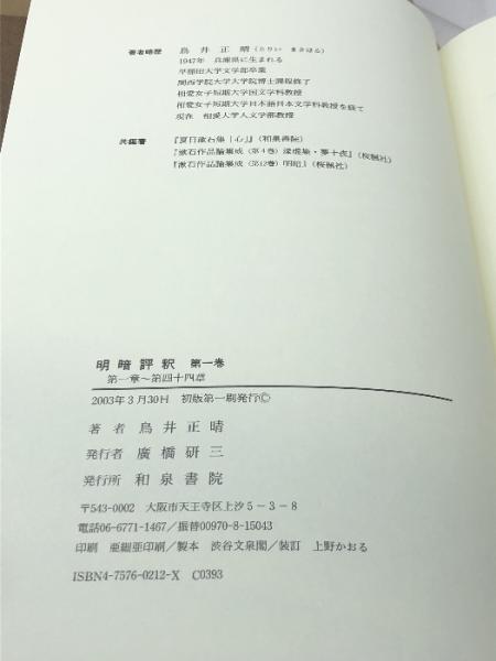 明暗評釈 第1巻 第一章~第四十四章 和泉書院 鳥井 正晴