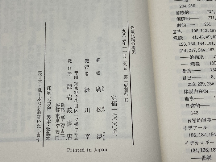 物象化論の構図 廣松渉著 岩波書店 1983年