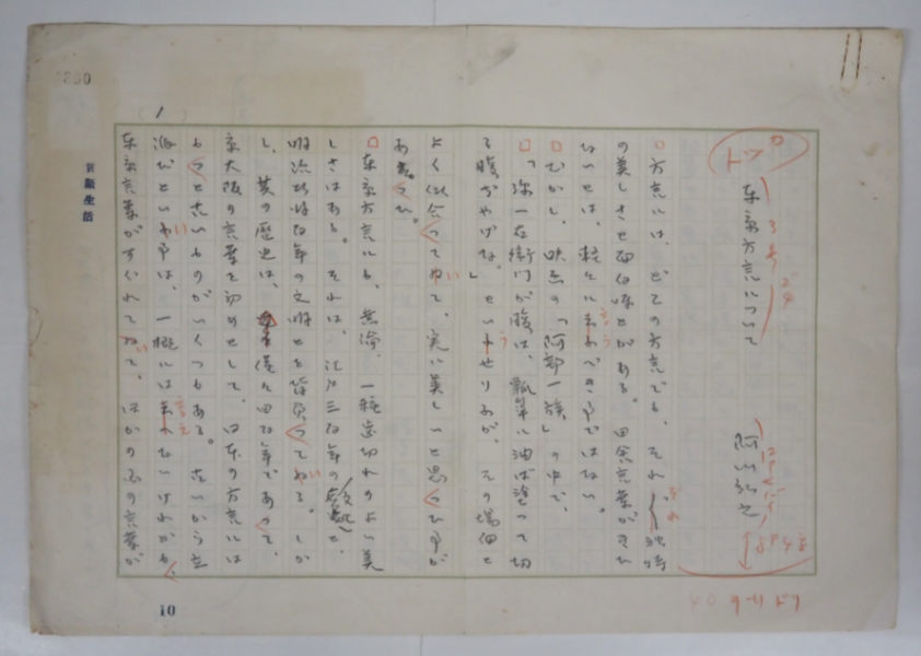 • 解説 『東京方言について』 鉛筆書四百字詰4枚完(4枚目は2行) 【状態に関する注意】けやき書店の掲載品は全て、状態に関わらず「中古品(並)」と表示されています。「日本の古本屋」は6段階の「状態」表記が必須となりましたが、当店の扱う商品の特質上、状態の簡易な区分けは適切ではない(不可能な)為、状態欄の「中古品(並)」という表現は考慮にいれないで下さい。痛みなどの瑕疵につきましては、解説欄等をご参考にして下さい。状態表記の無いものは特に問題なく良好とお考え下さい。: