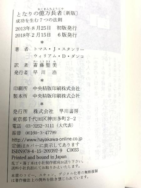 となりの億万長者 〔新版〕 ― 成功を生む7つの法則 早川書房 ウィリアム・D・ダンコ