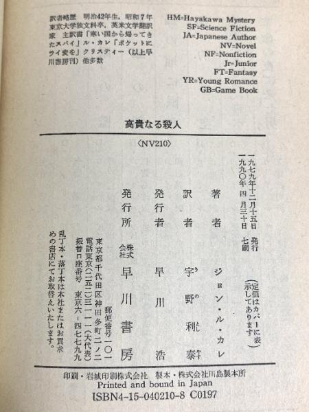 高貴なる殺人 (ハヤカワ文庫 NV 210) 早川書房 ジョン ル カレ