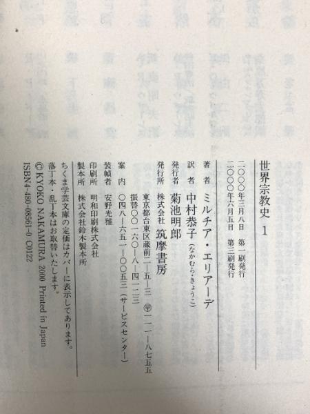 世界宗教史 (1) (ちくま学芸文庫 エ 3-1) 筑摩書房 ミルチア エリアーデ