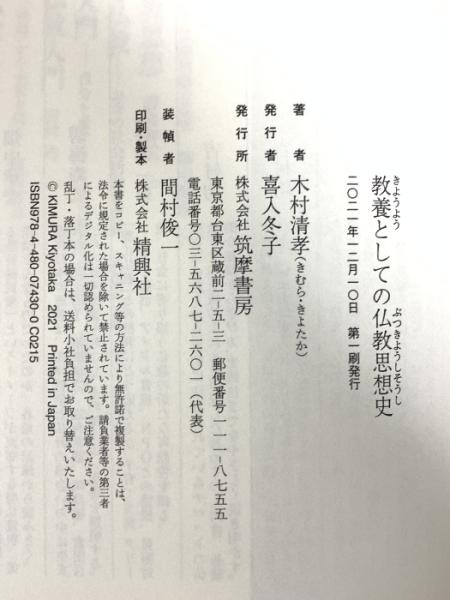 教養としての仏教思想史 (ちくま新書) 筑摩書房 木村 清孝